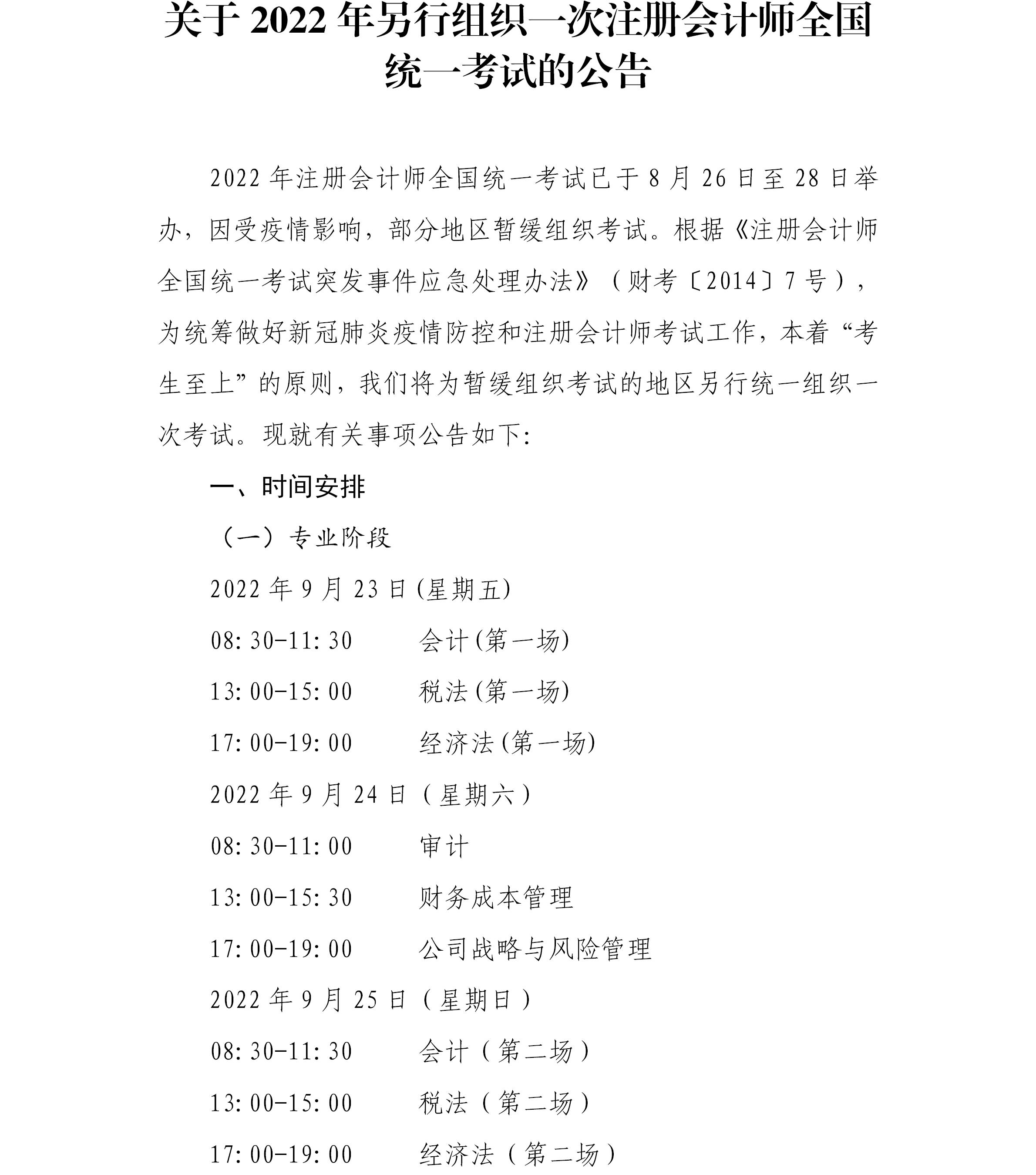 近日,云南省注冊(cè)會(huì)計(jì)師協(xié)會(huì)轉(zhuǎn)發(fā)了財(cái)政部注冊(cè)會(huì)計(jì)師考試委員會(huì)辦公室發(fā)布的《關(guān)于2022年另行組織一次注冊(cè)會(huì)計(jì)師全國統(tǒng)一考試的公告》,確定2022年注會(huì)延考時(shí)間,一起來看看吧!