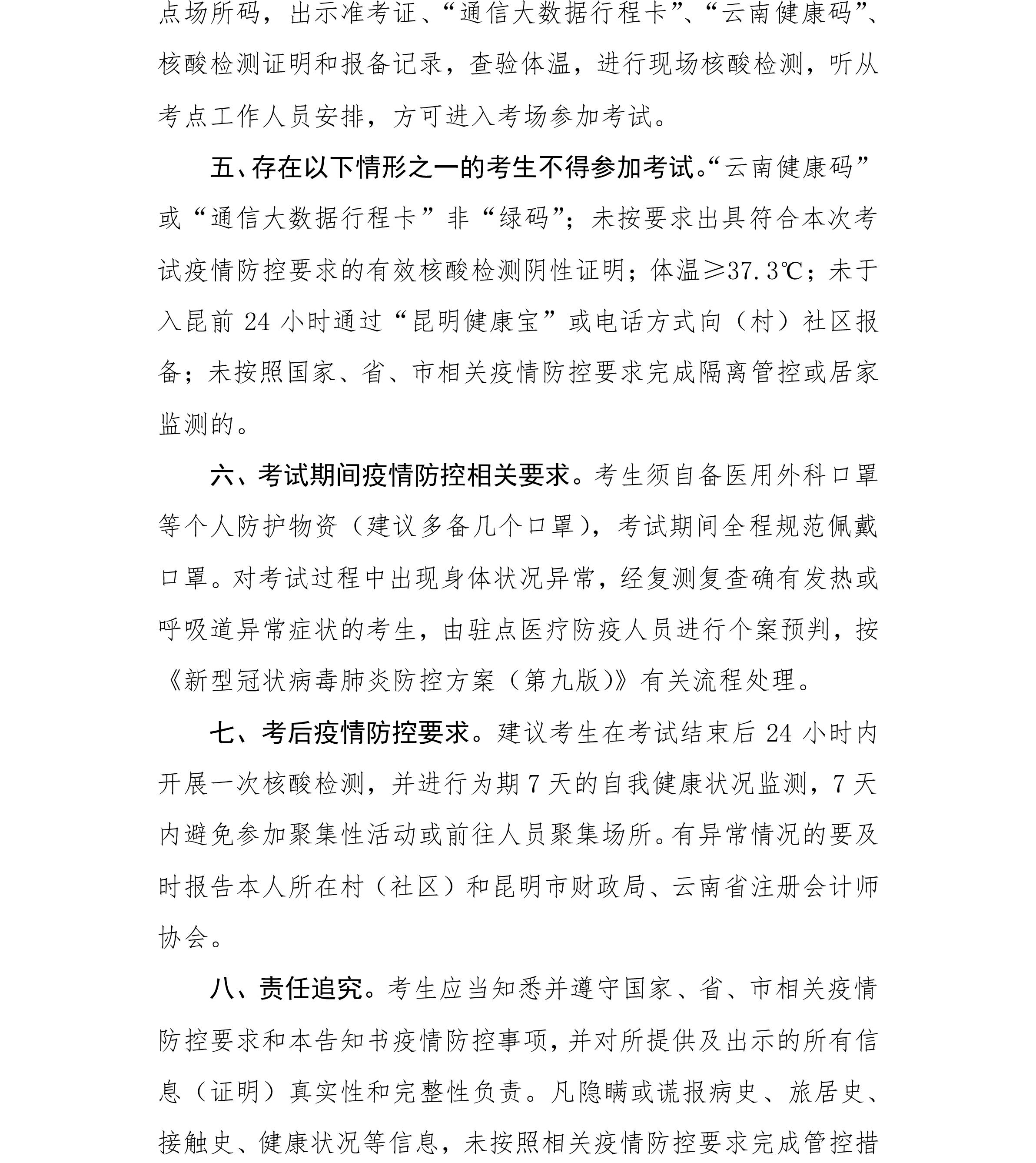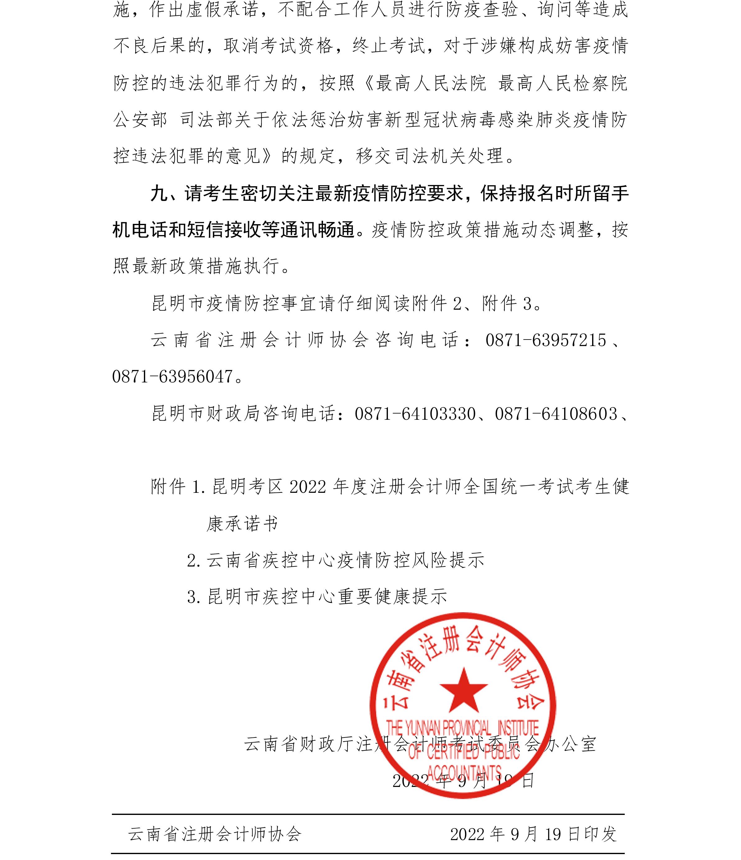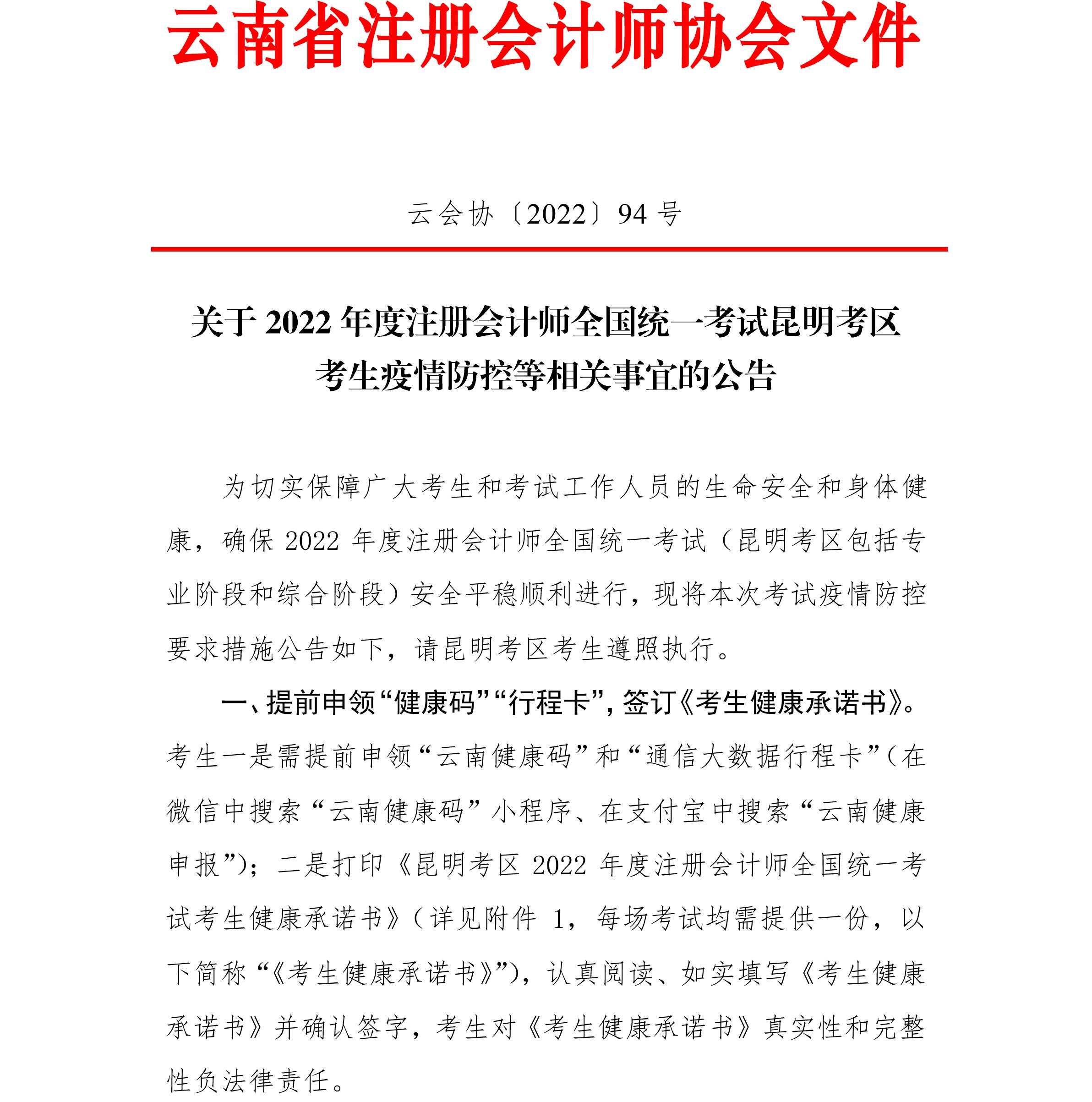 關(guān)于2022年度注會(huì)考試云南昆明考區(qū)考生疫情防控等相關(guān)事宜的公告