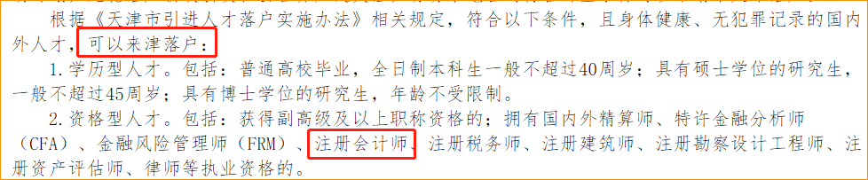 從《天津市人社局關(guān)于開展2021年資格型人才引進專項資助申報工作的通知》中我們能夠得知:2020年1月1日后,全職來津工作并與我市用人單位簽訂3年以上工作合同(協(xié)議),年齡一般不超過50周歲,持有注冊會計師執(zhí)業(yè)證書且最近一個年度年檢通過,已經(jīng)我市注冊會計師協(xié)會辦理轉(zhuǎn)會手續(xù)的注冊會計師,可獲得3萬元獎勵資助。
