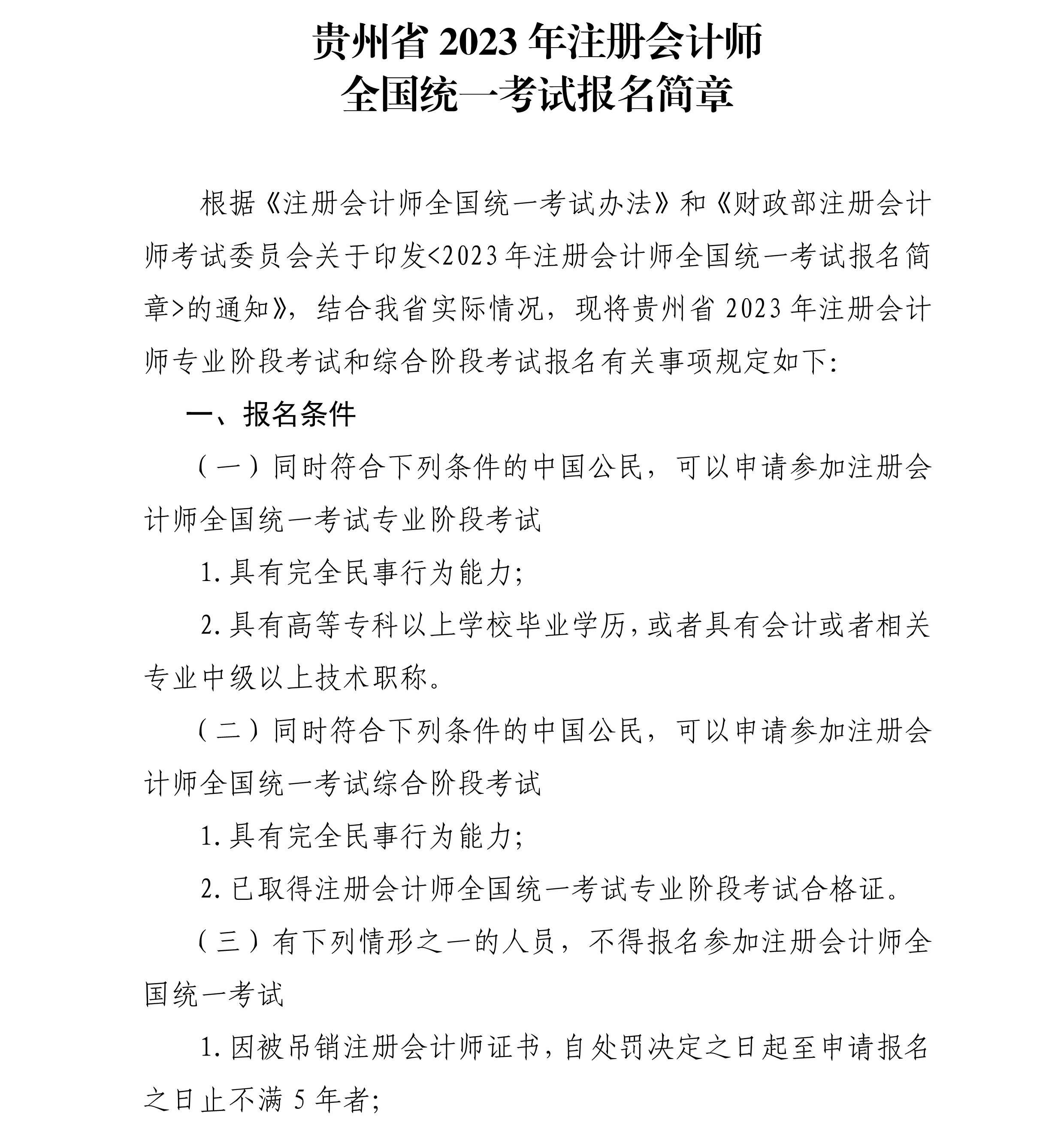 貴州省2023年注冊(cè)會(huì)計(jì)師全國(guó)統(tǒng)一考試報(bào)名簡(jiǎn)章