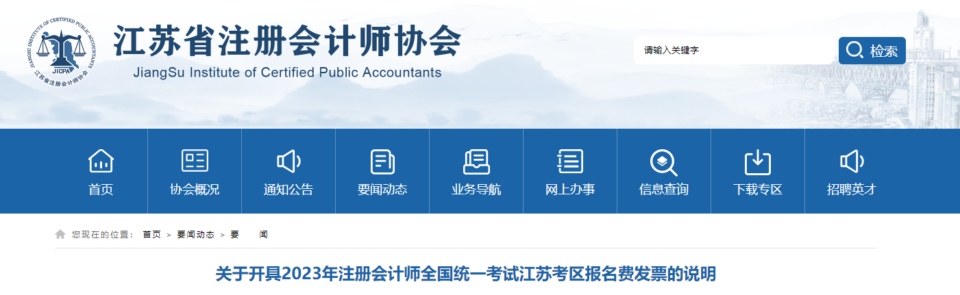 江蘇考區(qū):2023年注會考試報名費發(fā)票開具說明