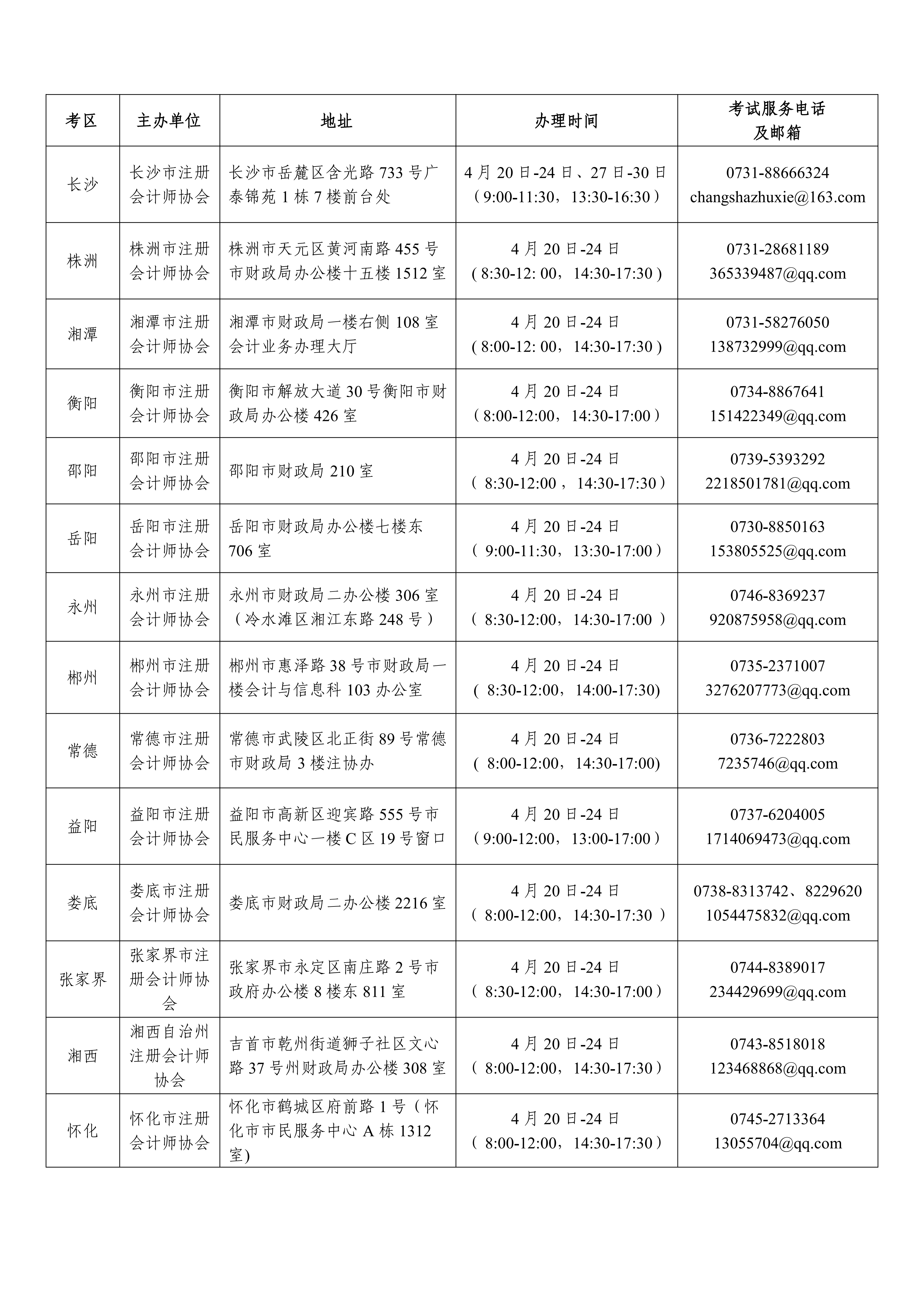 (八)市州注協(xié)現(xiàn)場資格審核、采集照片的地址、辦理時間和考試服務(wù)電話及郵箱。