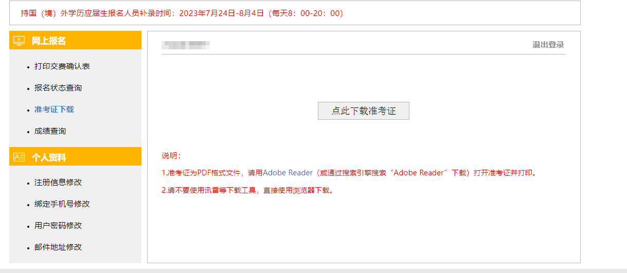 第二步:進(jìn)入網(wǎng)報(bào)系統(tǒng),點(diǎn)擊“準(zhǔn)考證下載”