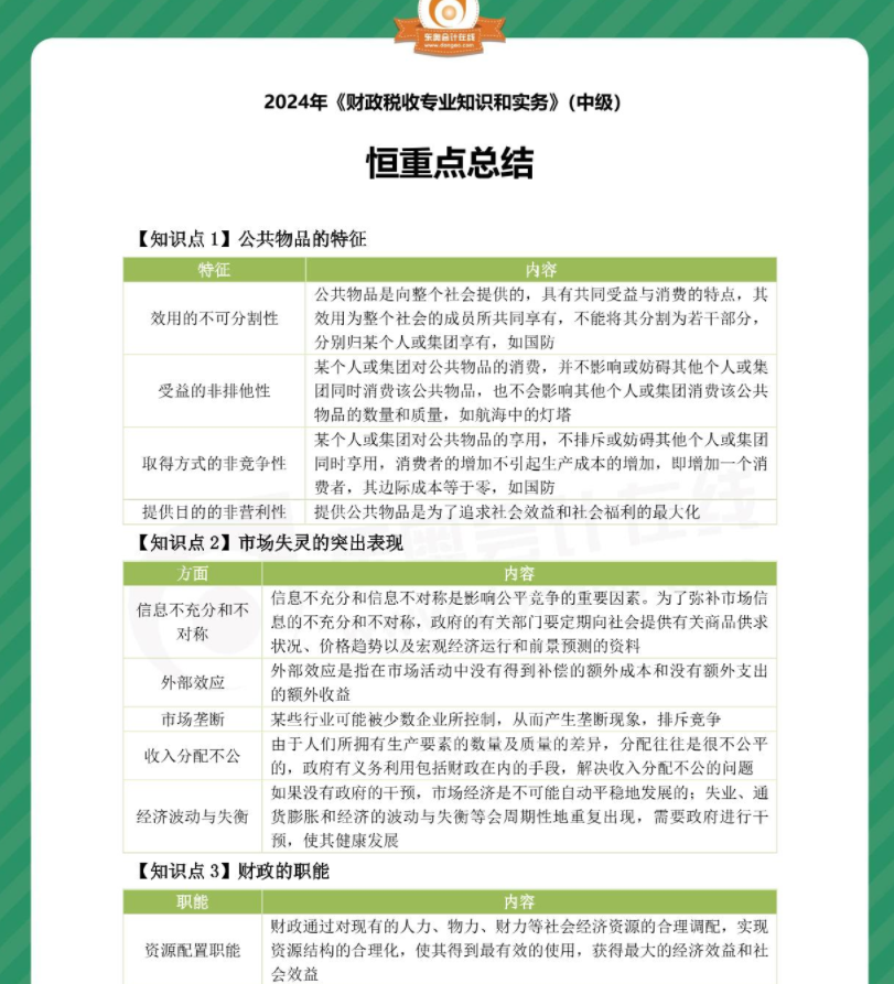 2024年中級(jí)經(jīng)濟(jì)師《財(cái)政稅收》恒重點(diǎn)總結(jié)