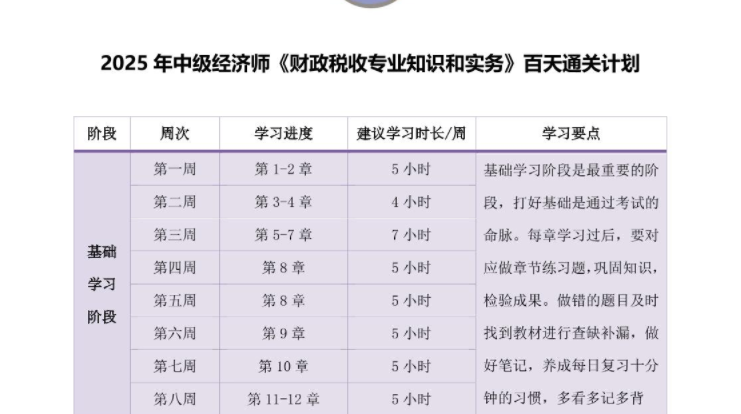 2025年中級經(jīng)濟師考試漸近,《財政稅收》科目因其政策性強、知識點繁雜,讓不少考生心生焦慮。如何在有限時間內(nèi)高效備考、精準提分?本文為考生以表格的形式闡述“百天通關(guān)計劃”,從基礎梳理到重難點突破,從真題演練到模擬沖刺,科學規(guī)劃每日任務,步步為營。