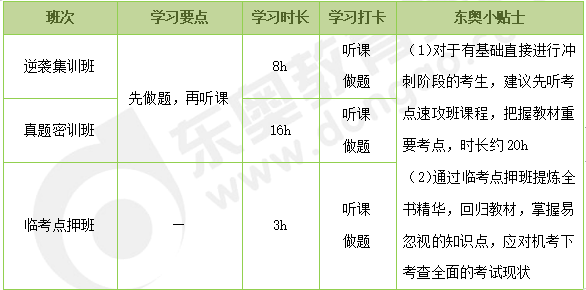 聽課任務(wù):逆襲集訓(xùn)班+真題密訓(xùn)班+臨考點押班等。