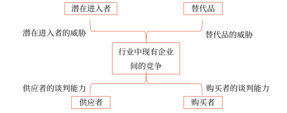 “五力模型”分析法是分析行業(yè)結(jié)構(gòu)的重要工具。它是由著名戰(zhàn)略管理學(xué)家邁克爾·波特教授提出的。在一個行業(yè)里,普遍存在著潛在進入者的威脅、行業(yè)中現(xiàn)有企業(yè)間的競爭、替代品的威脅、供應(yīng)者的談判能力和購買者的談判能力這五種基本競爭力量。