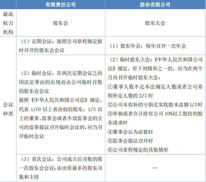 有限責(zé)任公司、股份有限公司的權(quán)力機(jī)構(gòu)