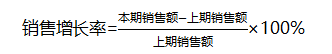指本期產(chǎn)品銷售增加額與上期產(chǎn)品銷售額的比值,可以衡量企業(yè)的成長(zhǎng)狀況和發(fā)展能力。計(jì)算公式為: