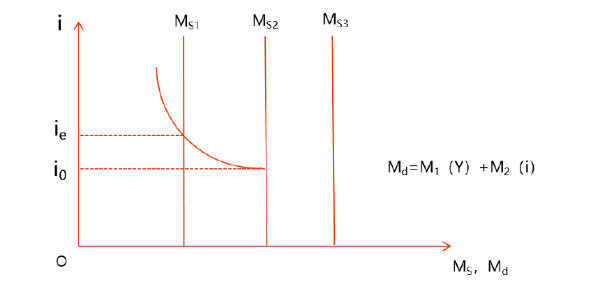 (1)凱恩斯認為,貨幣供給(MS)是外生變量,由中央銀行直接控制。因此,貨幣供給獨立于利率的變動。