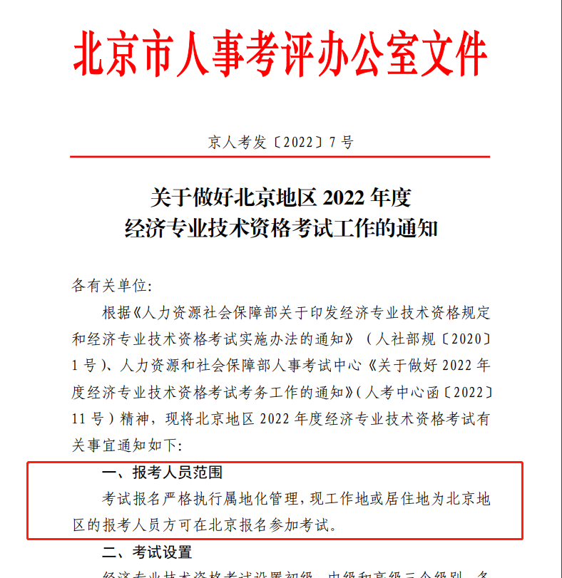 因?yàn)橹屑?jí)經(jīng)濟(jì)師實(shí)行屬地化報(bào)名規(guī)則,所以大部分中級(jí)經(jīng)濟(jì)師報(bào)名簡(jiǎn)章會(huì)標(biāo)準(zhǔn)報(bào)考人員范圍,例如2022年北京中級(jí)經(jīng)濟(jì)師報(bào)名簡(jiǎn)章: