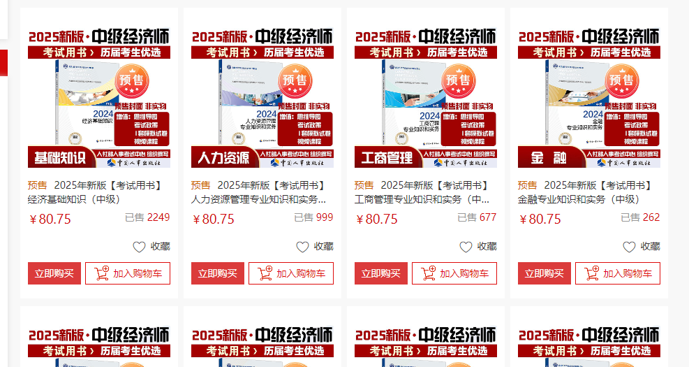 2025年中級經(jīng)濟(jì)師新版教材根據(jù)今年中國人事考試網(wǎng)的預(yù)售信息得知:每科為80元左右,考生需要考兩科,那么教材費(fèi)用需要花費(fèi)160元左右,具體截圖如下:
