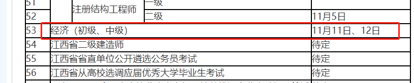 注意:根據(jù)江西省人事考試中心2023年度考務(wù)工作安排表我們可以看出,經(jīng)濟(初級、中級)考試時間為23年11月11日、12日,并未安排2022年度中級經(jīng)濟師補考