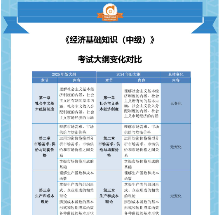 2025年中級經(jīng)濟師考綱重磅更新! 備考方向大調(diào)整,你的復習策略跟上了嗎?本文深度對比《經(jīng)濟基礎》《財政稅收》《金融》《工商管理》《人力資源》五大科目考綱變化,劃重點、析難點、指方向!新增考點有哪些?刪減內(nèi)容需注意?命題趨勢如何把握?一文帶你看懂考綱變與不變,助你精準鎖定高分考點,避開無效復習。