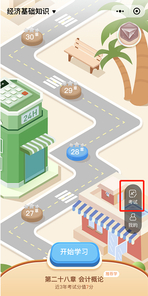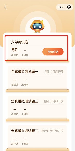 3、入學測試建議考生在學習前進行,有助于了解自身基礎(點擊考試即可看到“入學測試”)