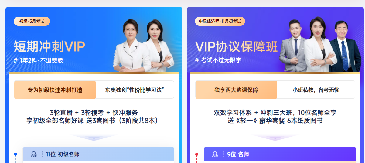 初級(jí)會(huì)計(jì)+中級(jí)經(jīng)濟(jì)師>>一備兩考進(jìn)階計(jì)劃直降優(yōu)惠!