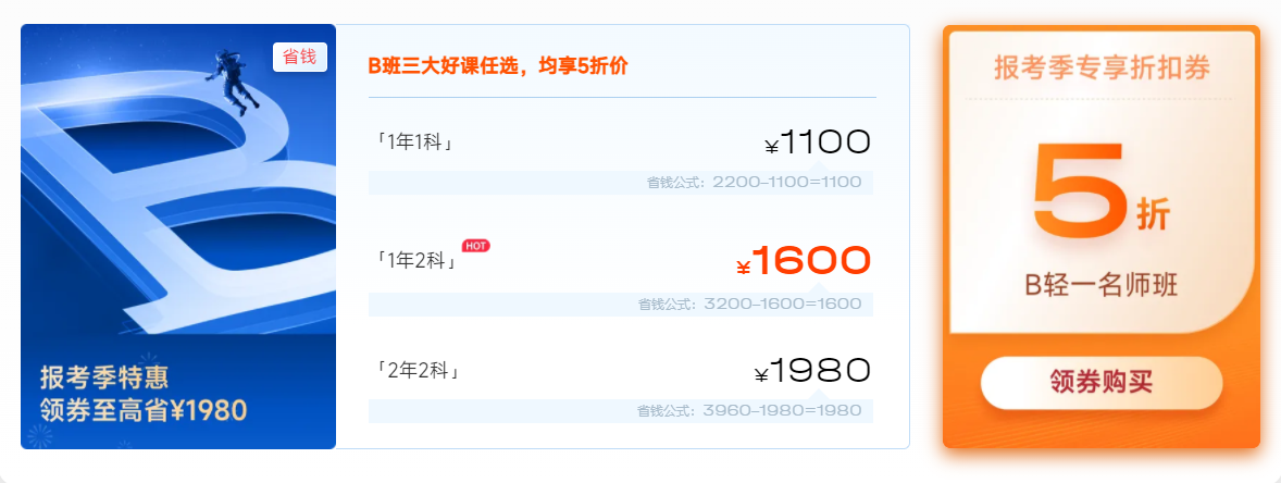 說到“中級職稱”您能想到哪些考試呢?中級經(jīng)濟(jì)師作為中級職稱考試之一,其“知名程度”還是比較挺高的,尤其是在近幾年越來越多的考生了解了中級經(jīng)濟(jì)師這門考試考后的諸多福利待遇,并結(jié)合自身職業(yè)及后續(xù)的職業(yè)發(fā)展來看選擇嘗試中級經(jīng)濟(jì)師考試;2023年7月份前后不但中級經(jīng)濟(jì)師進(jìn)入報名季,目前中級會計師這門中級職稱考試報名已經(jīng)開始,在此中級職稱報名季來臨之時,23年中級經(jīng)濟(jì)師B班優(yōu)惠“全面開啟”,一起來了解一下吧。