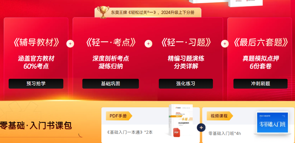2024年中級(jí)經(jīng)濟(jì)師全新考季正式開始,無(wú)論同學(xué)們是“中級(jí)經(jīng)濟(jì)師”的新考生或老同學(xué),備考沒(méi)有“短途”可走,找到適合自己的復(fù)習(xí)資料直觀重要,尤其是在中級(jí)經(jīng)濟(jì)師官方教材發(fā)布之前,不知道從哪里開始學(xué),學(xué)什么的同學(xué),2024年中級(jí)經(jīng)濟(jì)師《輕一》圖書組合全新升級(jí),八本書覆蓋備考的全階段,價(jià)格僅需兩位數(shù)!在品質(zhì)和價(jià)格之間無(wú)需做選擇,我們都要!