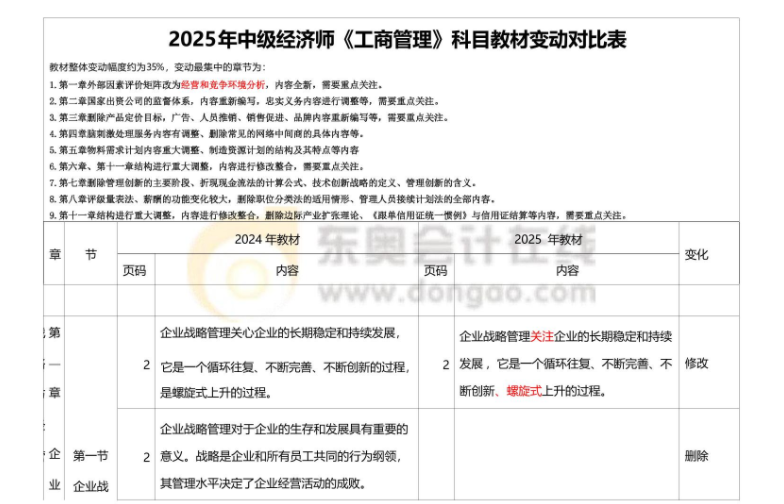 免費下載:2025年中級經(jīng)濟師新版教材變化對比!