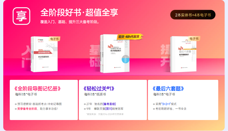 如您購“協(xié)議退費(fèi)版”只要參加25年中級經(jīng)濟(jì)師考試,且未通過科目成績不低于50分,我們將全額退還您未通過科目學(xué)費(fèi)(扣除圖書工本費(fèi)54.6-68.6元/科,其余全部退還?。?/span>查看協(xié)議完整版>