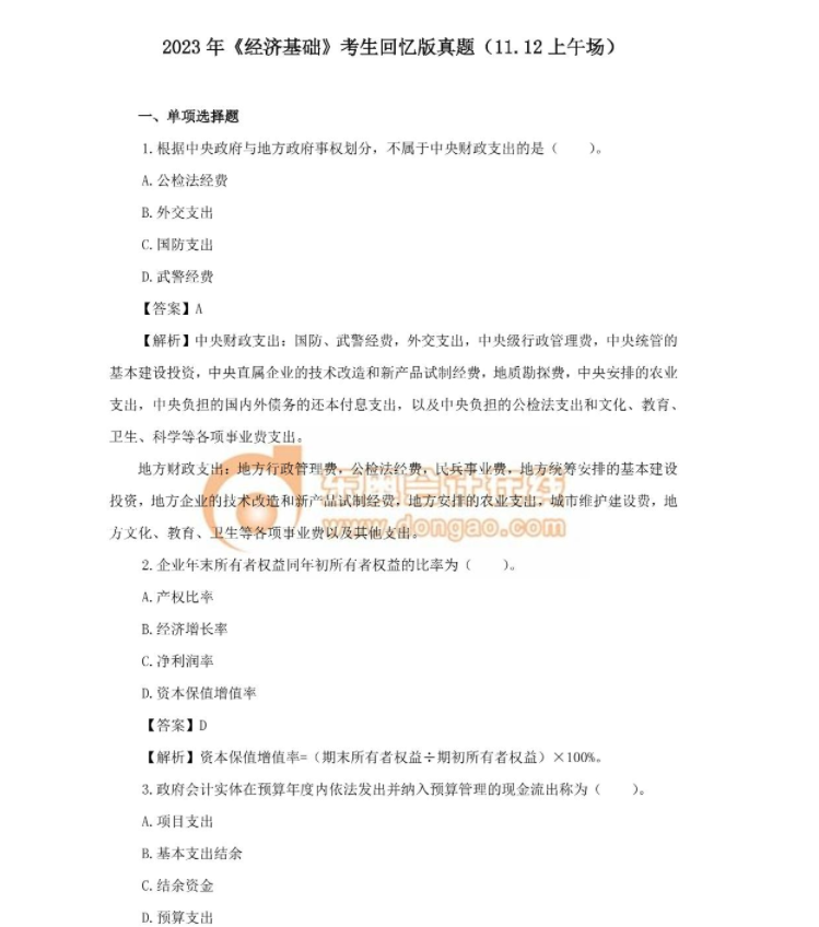 2023年中級經(jīng)濟師《經(jīng)濟基礎》回憶版真題(12日上午)
