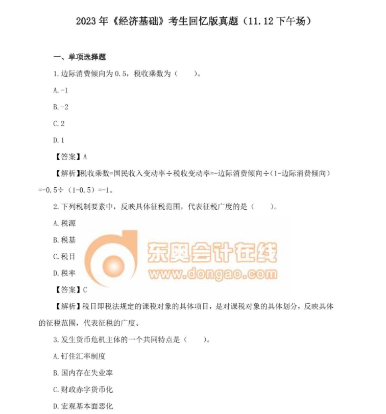注:以上中級(jí)經(jīng)濟(jì)師考試試題內(nèi)容由考生回憶反饋,東奧教研團(tuán)隊(duì)統(tǒng)計(jì),東奧會(huì)計(jì)在線整理發(fā)布