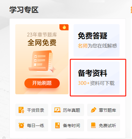 進(jìn)入方法2:進(jìn)入東奧會計(jì)在線主頁→學(xué)習(xí)專區(qū)→備考資料