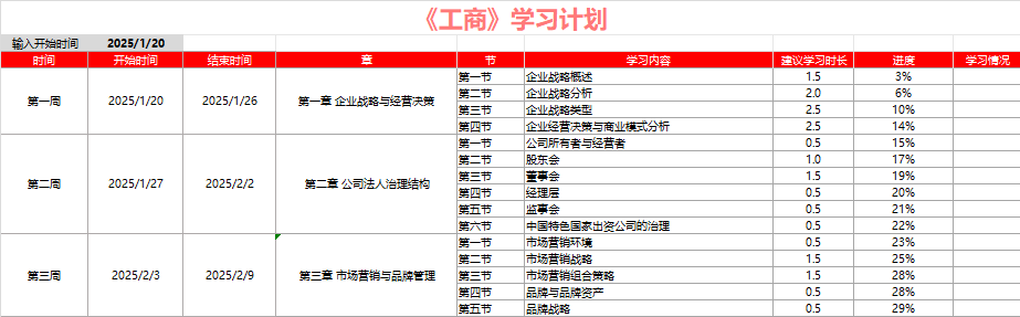 2025年《工商管理》學(xué)習(xí)計(jì)劃