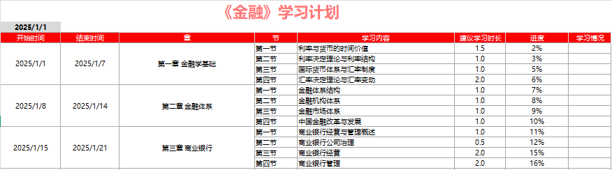 2025年《金融》學(xué)習(xí)計(jì)劃