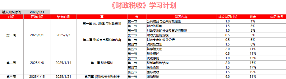 2025年《財(cái)政稅收》學(xué)習(xí)計(jì)劃