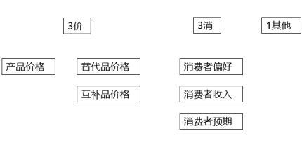 產(chǎn)品價格 | (1)價格是影響需求的最重要、最關(guān)鍵的因素 (2)一般來說,價格和需求呈反方向變化 |