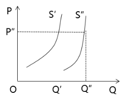 | 假定價格不變,由于價格以外的其他因素如成本等發(fā)生變動引起供給的相應(yīng)變動,這種變動表現(xiàn)為供給曲線的位移 (總結(jié):線動) |
