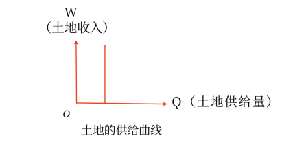 (1)土地的供給曲線是一條垂直線(因為土地的數(shù)量一般不變)。
