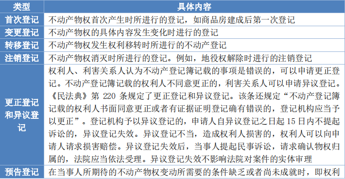 不動(dòng)產(chǎn)登記的類型