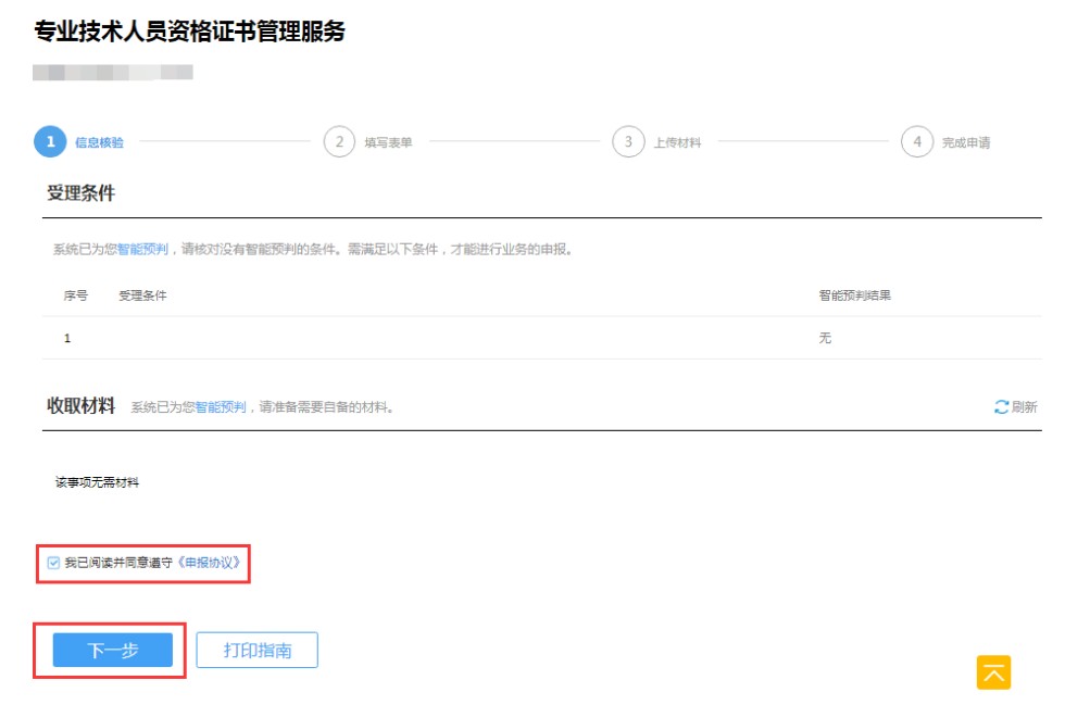 2.勾選“我已閱讀并同意遵守《申報(bào)協(xié)議》”,點(diǎn)擊“下一步”。