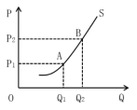 如圖所示,橫軸表示供給量,縱軸表示價(jià)格,當(dāng)價(jià)格從P1上升到P2時(shí),供給量從Q1增加到Q2