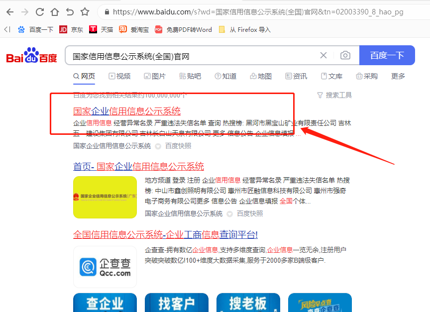 1、打開瀏覽器,搜索國家企業(yè)信用信息公示系統(tǒng):