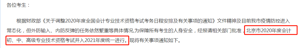 北京市會計資格考試并入2021年度統(tǒng)一進行