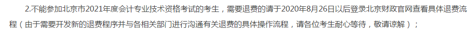 有很多考生由于今年在北京上學或工作,所以在北京報名參加考試,但是2021年不繼續(xù)在北京發(fā)展了怎么辦?其實在政策中也給出了相應的解釋,也就是如果不能在北京參加2021年的考試,大家可以申請退費,但是請大家把握好退費時間,并在規(guī)定時間內(nèi)完成退費,如果在規(guī)定時間內(nèi)沒有完成退費,則系統(tǒng)會默認為您在2021年可以在北京參加考試,會為您自動順延至2021年參考!如果大家申請退費,是沒有任何限制的,只要2020年度報名北京參加會計初、中、高級專業(yè)技術資格考試的考生,均可以申請退費。