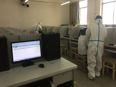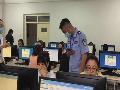 五是細化入場檢測流程。設(shè)立三個入場檢測環(huán)節(jié),每個環(huán)節(jié)明確崗位分工,責(zé)任落實到人。采取人臉識別體溫檢測系統(tǒng)、額溫槍等設(shè)備實施檢測體溫工作;財政部門工作人員查驗考生有效身份證、準考證、新冠肺炎防控和鼠疫防控健康碼;巡考人員、網(wǎng)絡(luò)安全保衛(wèi)支隊、治安大隊工作人員實時巡考,并使用警務(wù)通對考生身份證進行比對,嚴防替考及高科技作弊行為發(fā)生,并將相關(guān)疫情風(fēng)險排除在考場之外,為考試安全提供有效保障。