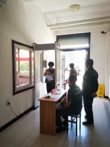 考生入場(chǎng),利用體溫門進(jìn)行體溫監(jiān)測(cè)。