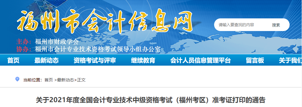 2021年度中級(jí)會(huì)計(jì)資格考試福州考區(qū)準(zhǔn)考證打印通告