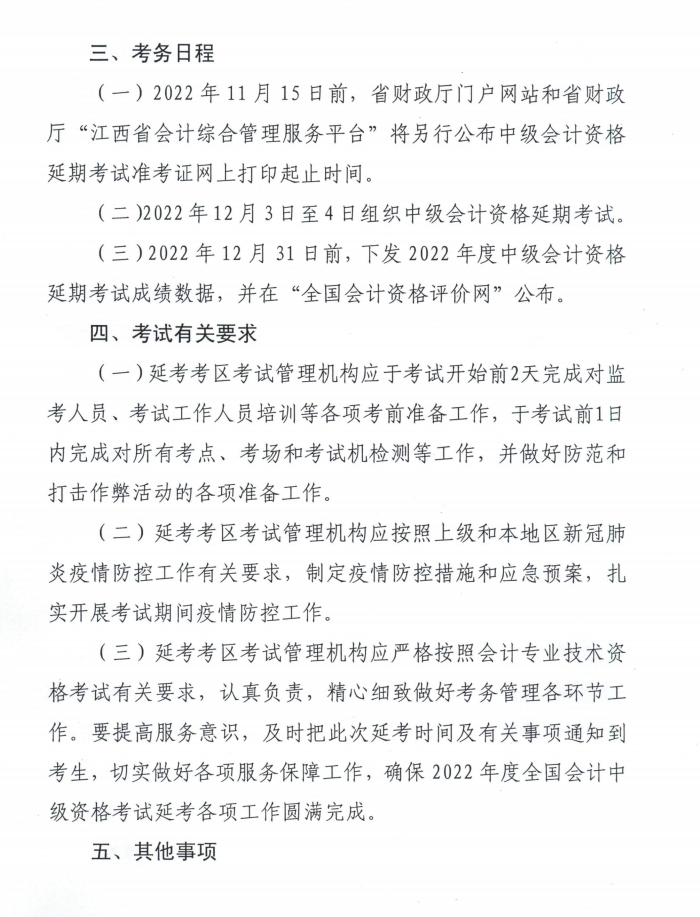 江西省吉安市2022年中級會計延期考試安排