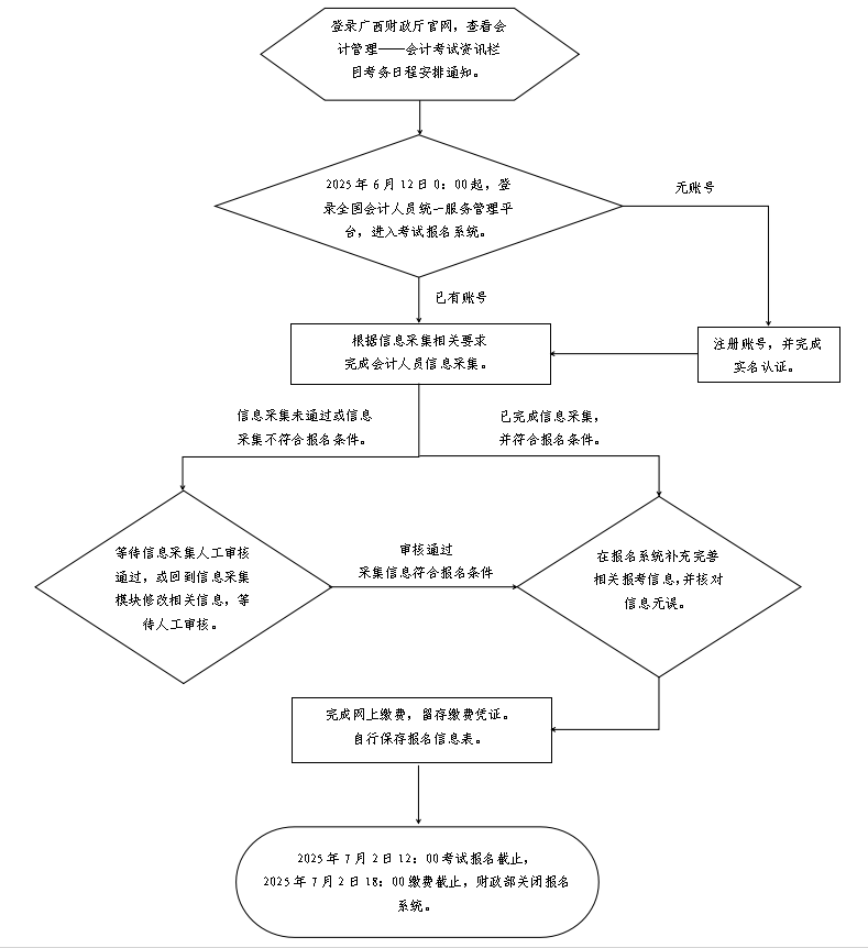 2025年度全國會計專業(yè)技術(shù)中級資格考試廣西考區(qū)報名流程圖