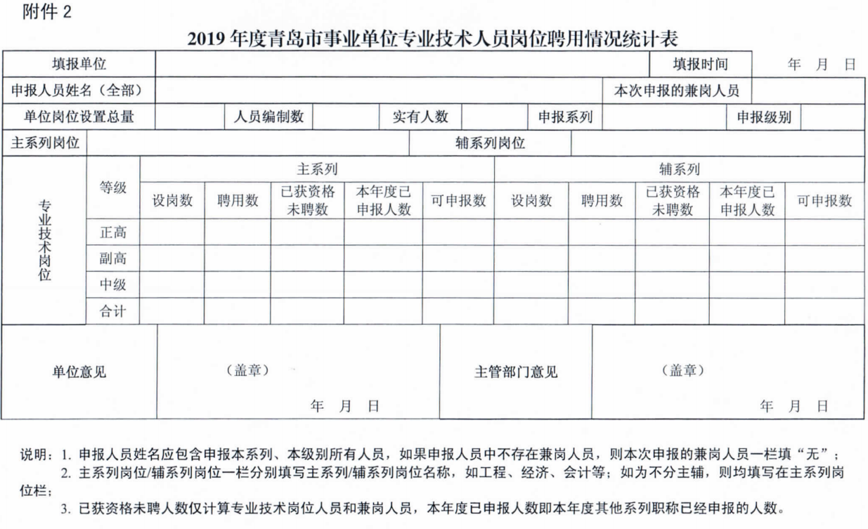 2. 2019年度青島市事業(yè)單位專業(yè)技術(shù)人員崗位聘用情況統(tǒng)計(jì)表