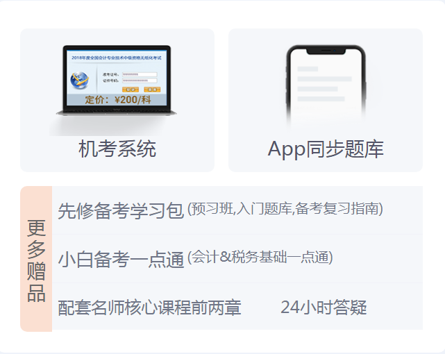 只要你預(yù)定《輕一》就送機(jī)考系統(tǒng),3科加一起能省600元,還有6大網(wǎng)課、2大題庫、1大服務(wù),超值超惠!