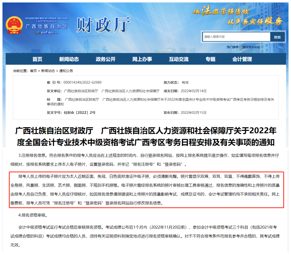 報名參加中級會計考試的考生須準(zhǔn)備近期免冠1寸標(biāo)準(zhǔn)證件數(shù)字照片(白色背景,JPG格式,大于10KB,像素大于等于295*413),按報名系統(tǒng)要求,對照片格式進(jìn)行預(yù)處理,通過審核后再進(jìn)行上傳,以免影響后續(xù)報名操作。因過度化妝、使用軟件程序修飾、自拍等造成照片與本人實際外貌相差較大、無法辨別而影響照片審核、參加考試或證書發(fā)放的,由報考人員自行承擔(dān)后果。