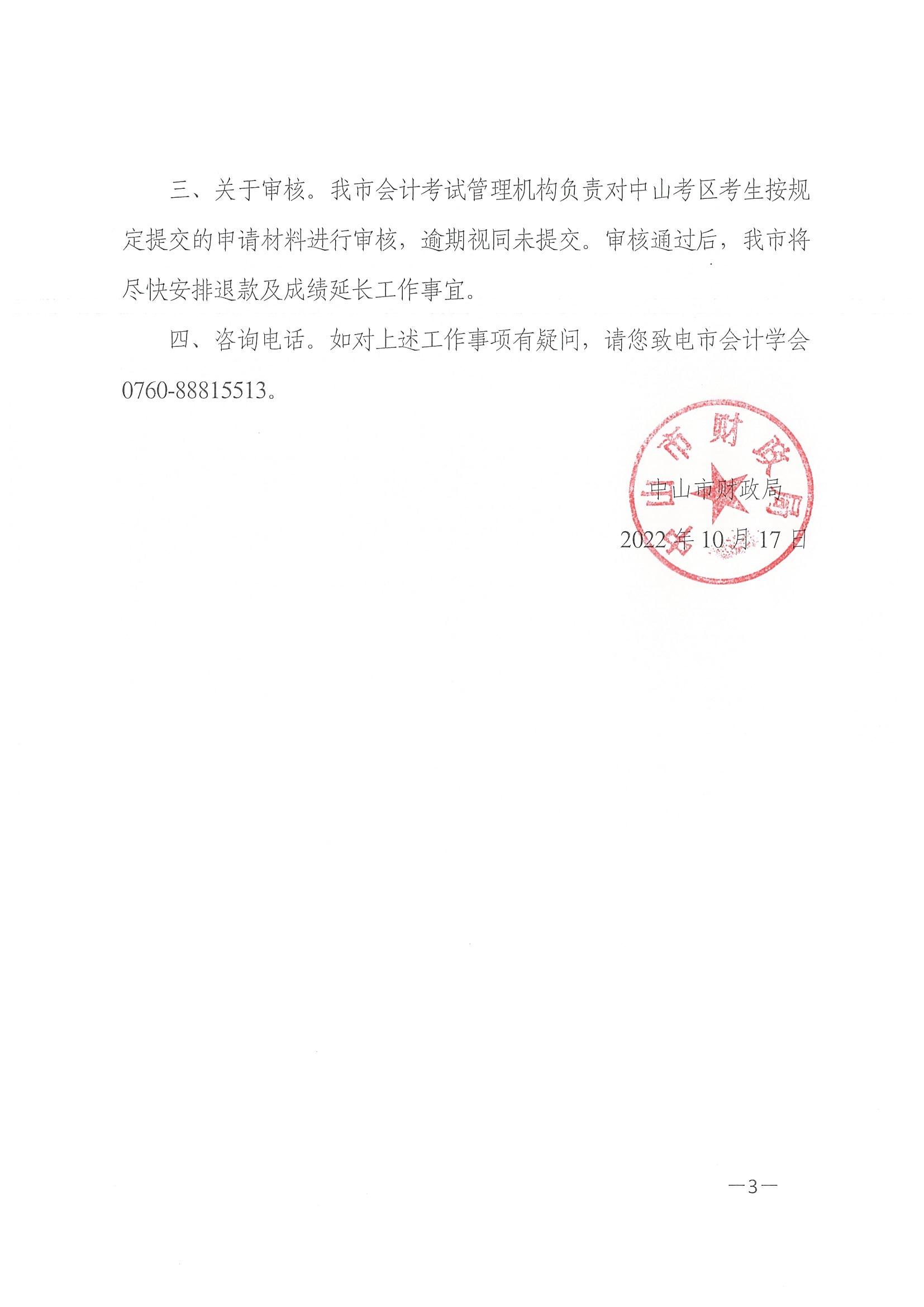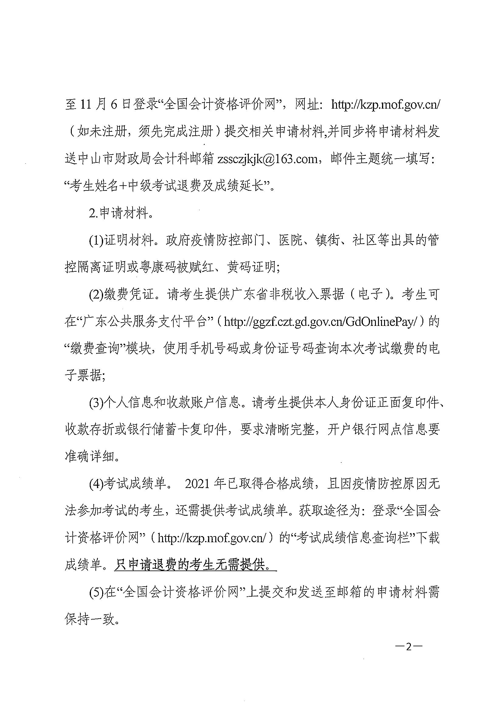 廣東省中山市2022年中級會計(jì)考試退費(fèi)及有關(guān)事項(xiàng)的通知