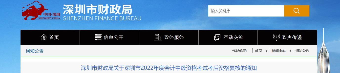 深圳市財政局關(guān)于深圳市2022年度會計中級資格考試考后資格復(fù)核的通知