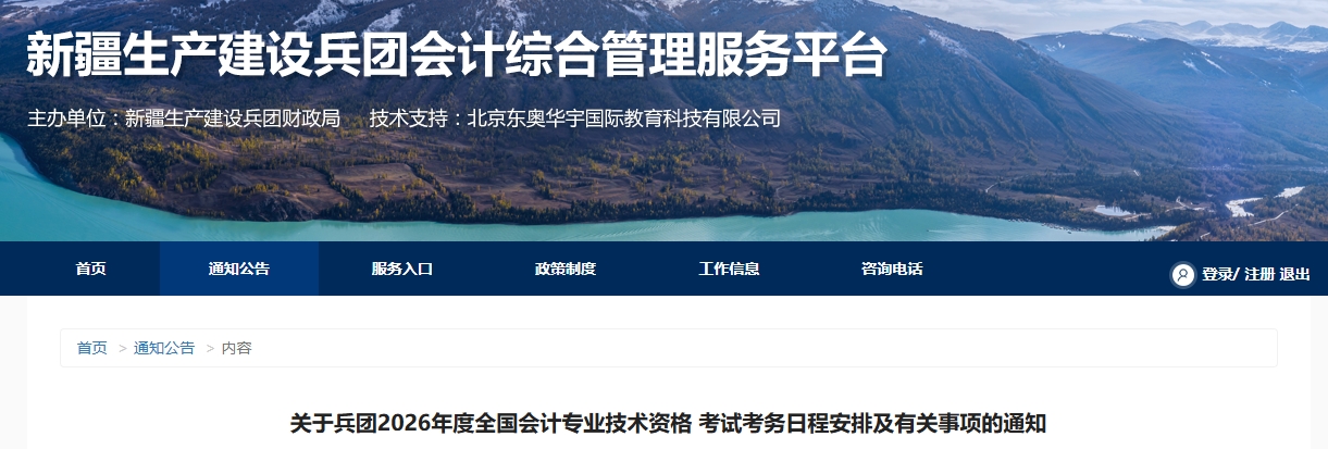 關于兵團2026年度全國會計專業(yè)技術資格考試考務日程安排及有關事項的通知